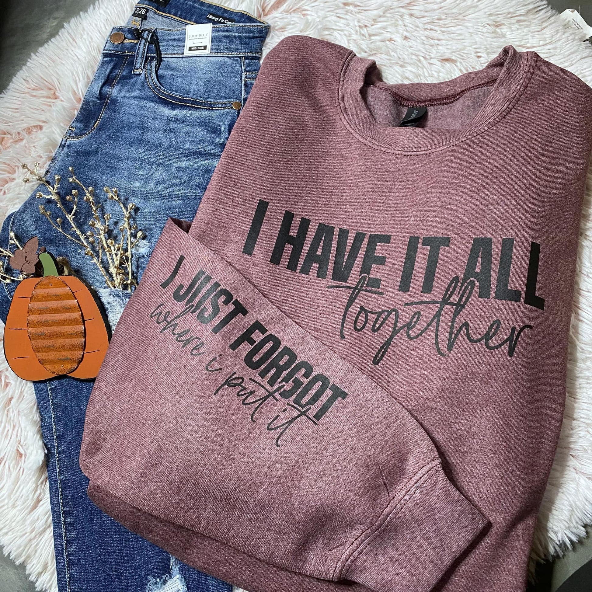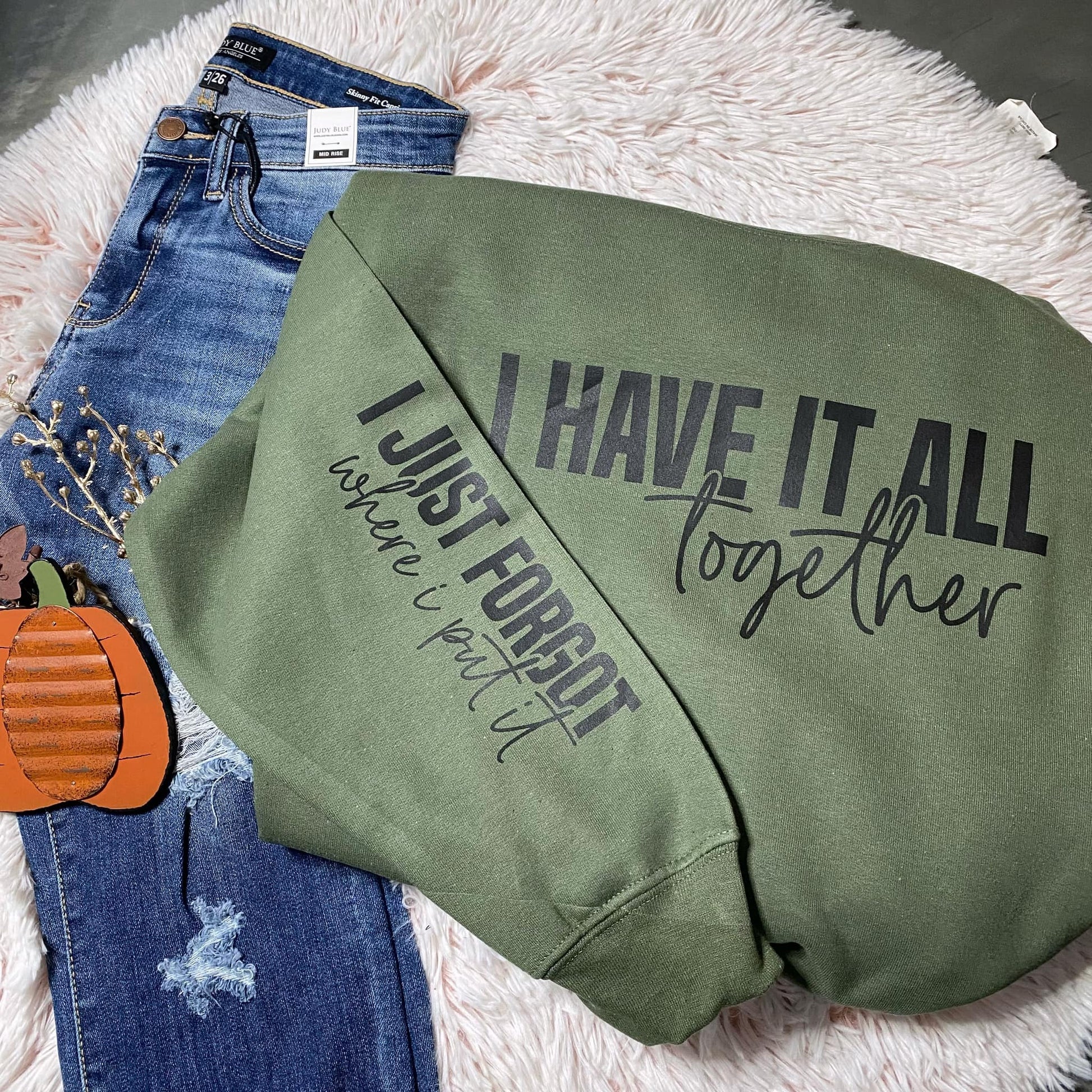 Stay organized and stylish with the "I have it all together" tee. This quirky shirt is a playful reminder that you've got it handled (or at least, you can pretend you do). Perfect for anyone who appreciates humor and a little bit of wordplay in their wardrobe.