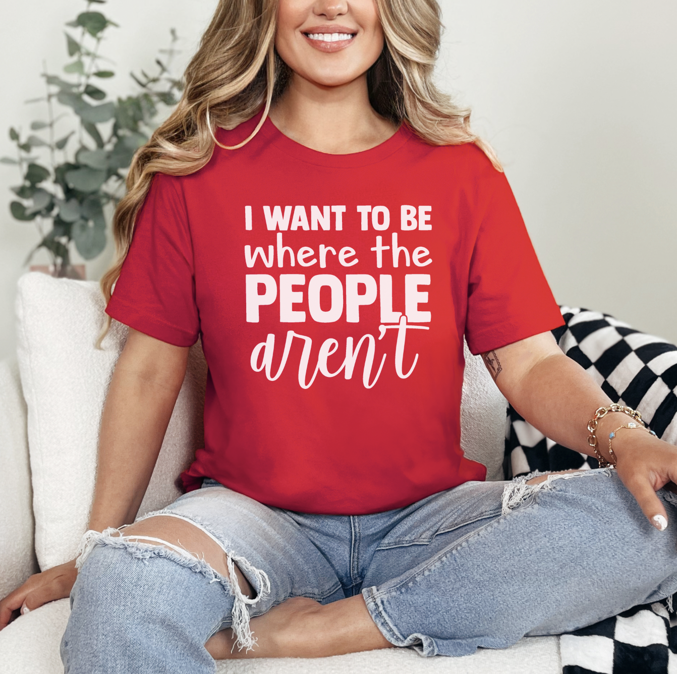 "I want to be where the people aren't" with this playful tee (because let's face it, people can be annoying). Be unique and stand out with this quirky shirt, perfect for those who want to avoid the crowds and embrace their individuality.
