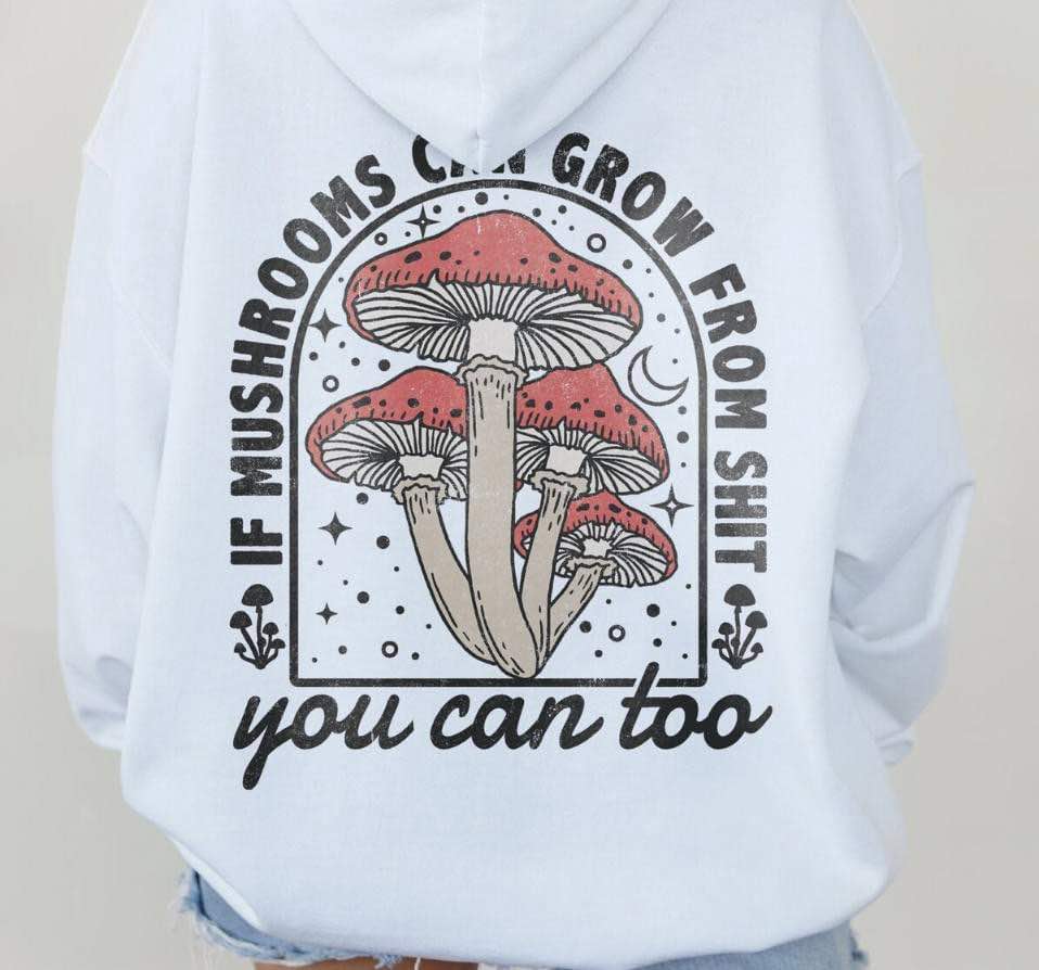 Grow like a mushroom (from sh*t) with this tee. Quirky and playful, it'll inspire you to thrive in any situation. Believe in yourself and see the potential benefits of this shirt. (Note: No actual mushrooms included.)