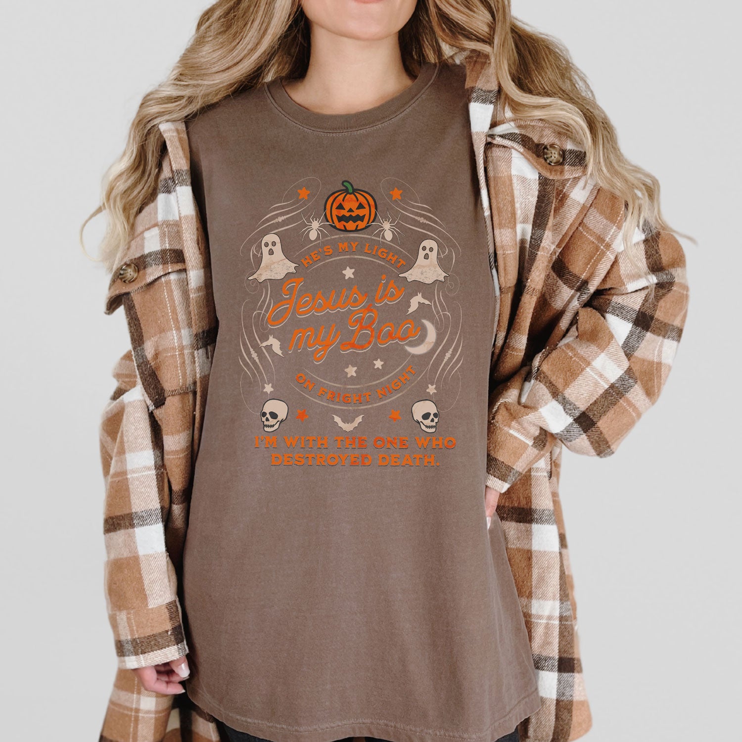 Who says spooky season can’t share space with your faith? This Jesus Is My Boo graphic tee brings together playful Halloween vibes with a powerful faith-filled message.