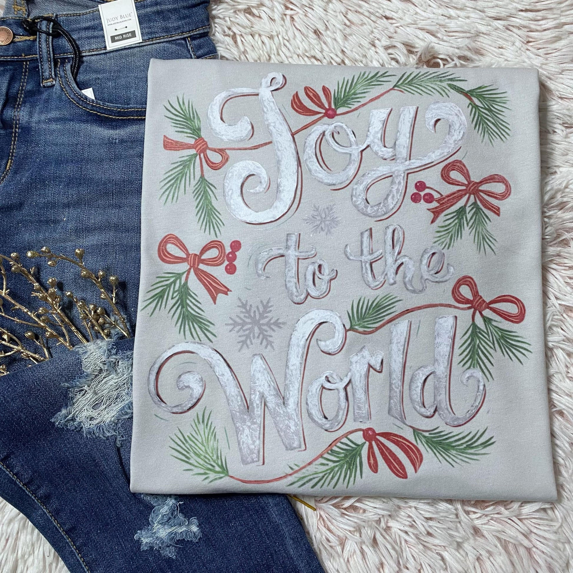 Bring festive vibes wherever you go with our "Joy to the World" graphic tee! This charming design features elegant script surrounded by holiday greenery, bows, and snowflakes, perfectly capturing the warmth and joy of the Christmas season. Made with ultra-soft fabric, this Christmas shirt is as comfortable as it is stylish, making it ideal for holiday gatherings, decorating, or cozy nights in. Add this festive tee to your wardrobe and spread joy all season long!