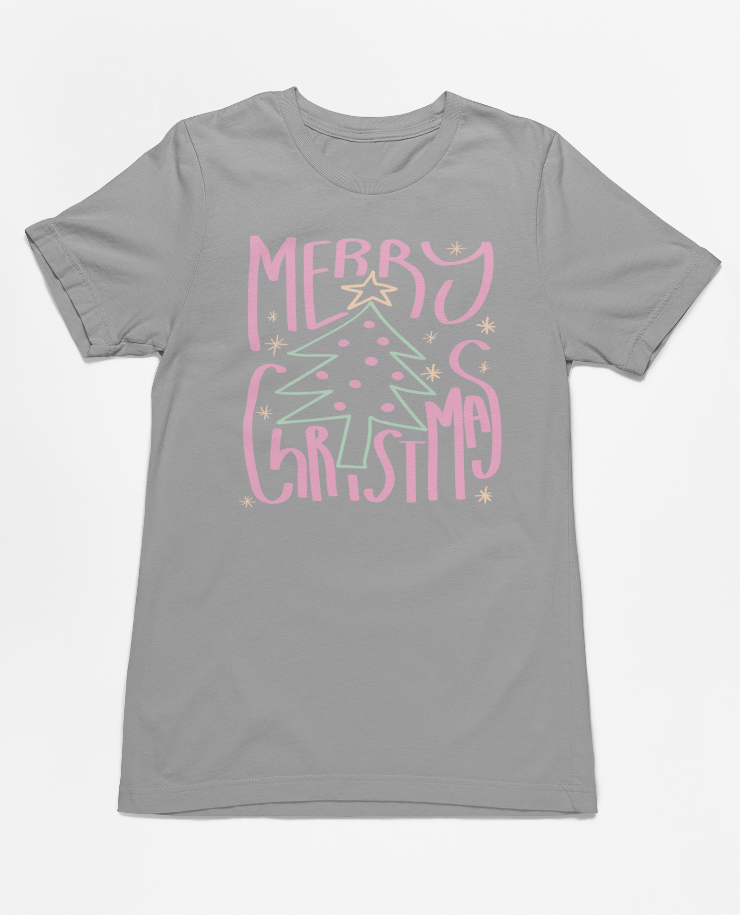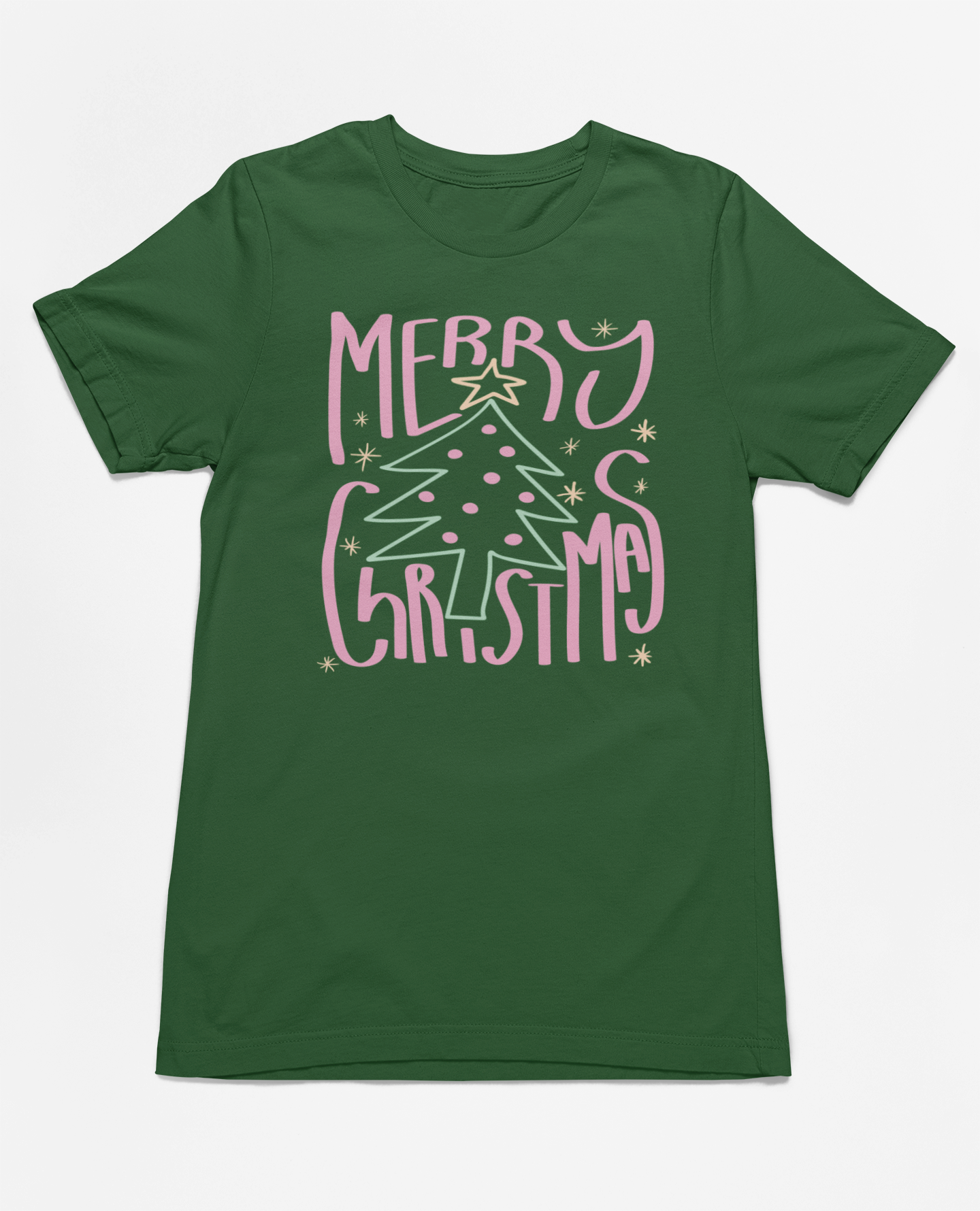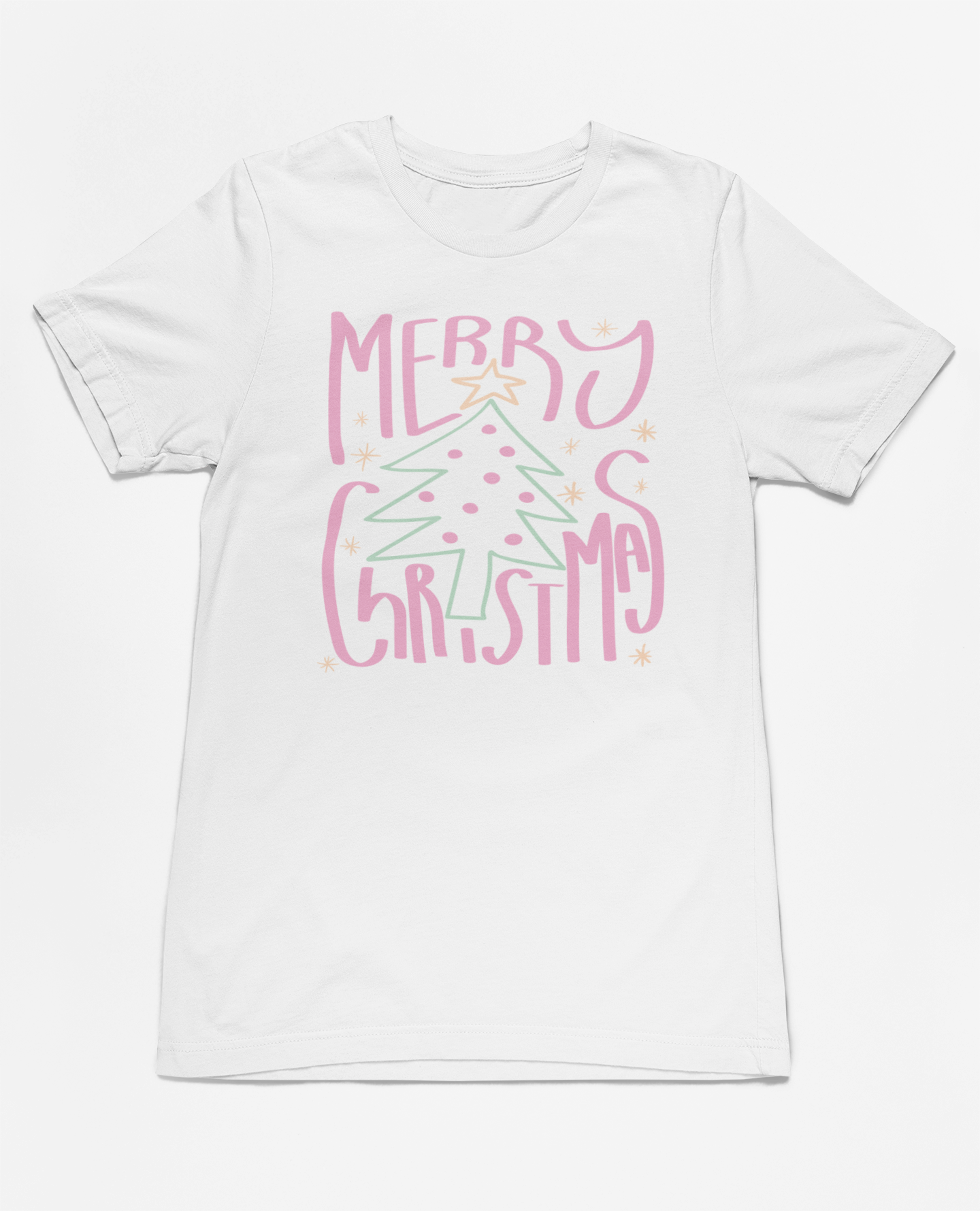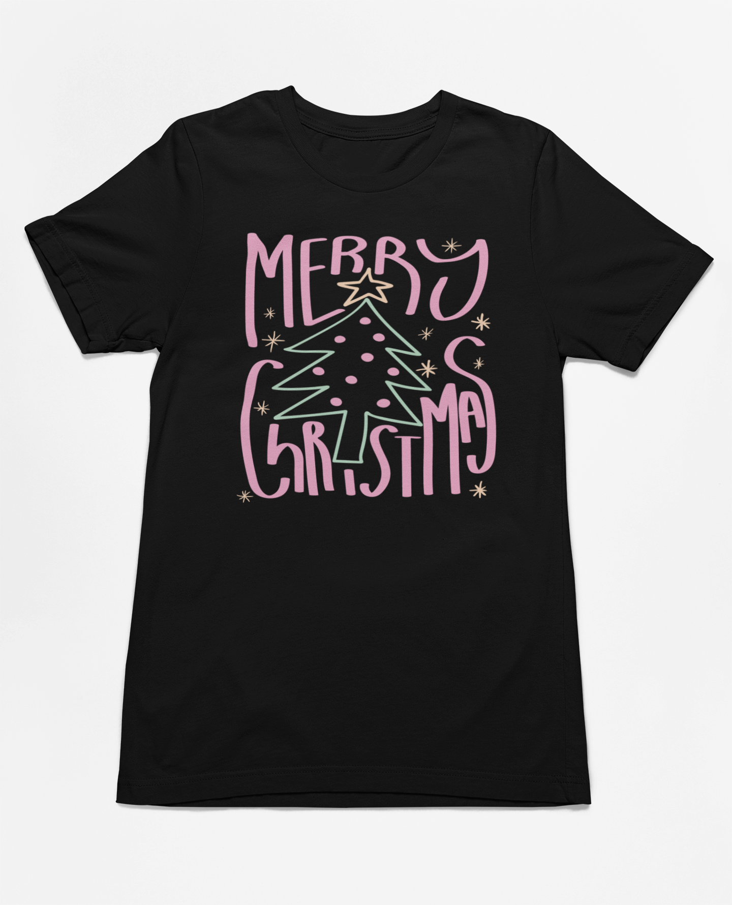 Celebrate the season in pastel perfection with our "Merry Christmas" graphic tee! Featuring a whimsical Christmas tree adorned with soft pink and green accents, this festive design brings a playful and cheerful vibe to your holiday wardrobe. Made from ultra-soft fabric, it’s perfect for gift wrapping, holiday parties, or cozying up with hot cocoa. Add this delightful Christmas shirt to your collection and spread pastel holiday joy all season long!