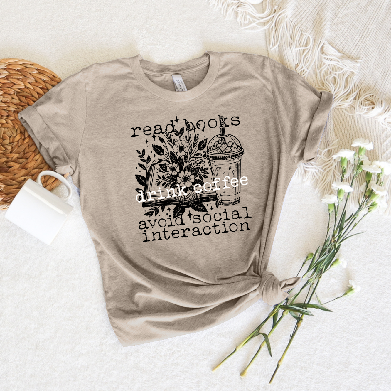 Unleash the introvert in you with our Read, Drink, Avoid tee. Perfect for book lovers and coffee enthusiasts who prefer a quiet night in. Say no to social interaction (but yes to caffeine) with this quirky tee.