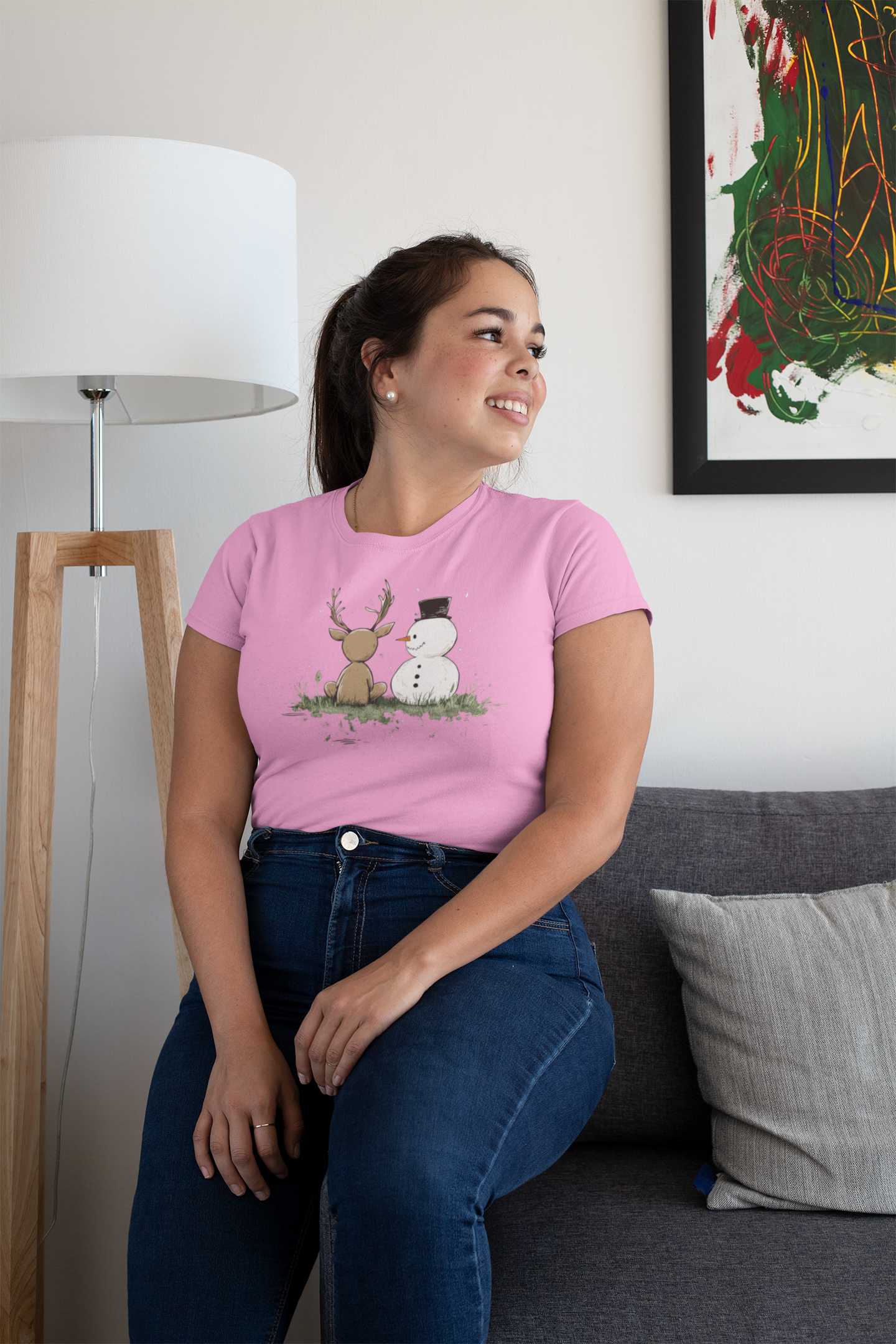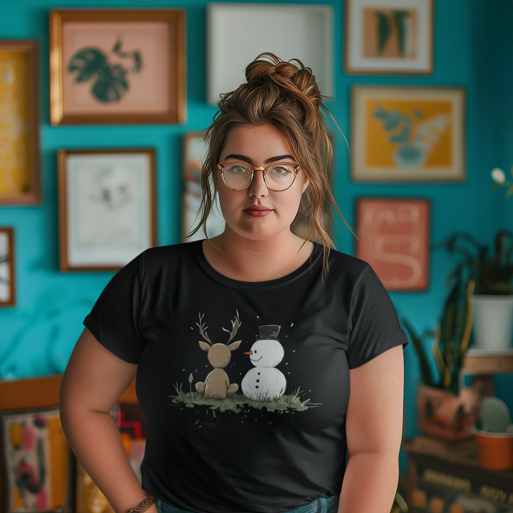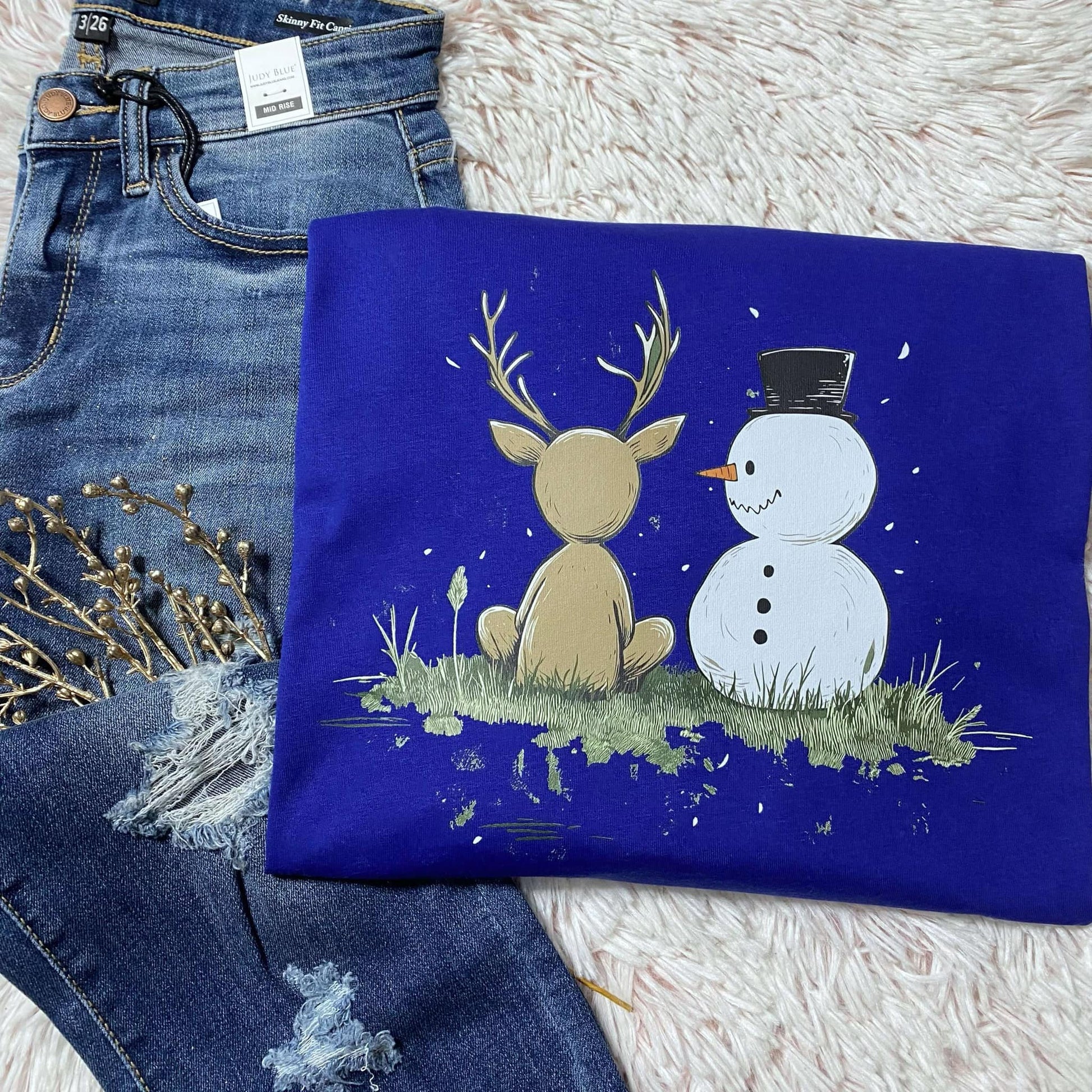 Celebrate the magic of friendship and winter with our "Reindeer and Snowman Friends" graphic tee! Featuring an adorable scene of a reindeer and snowman sitting side by side, this heartwarming design is perfect for spreading cozy, festive vibes. Made from ultra-soft fabric, this shirt is ideal for holiday gatherings, winter strolls, or relaxing by the fire. Add this charming Christmas tee to your wardrobe and share the joy of the season!
