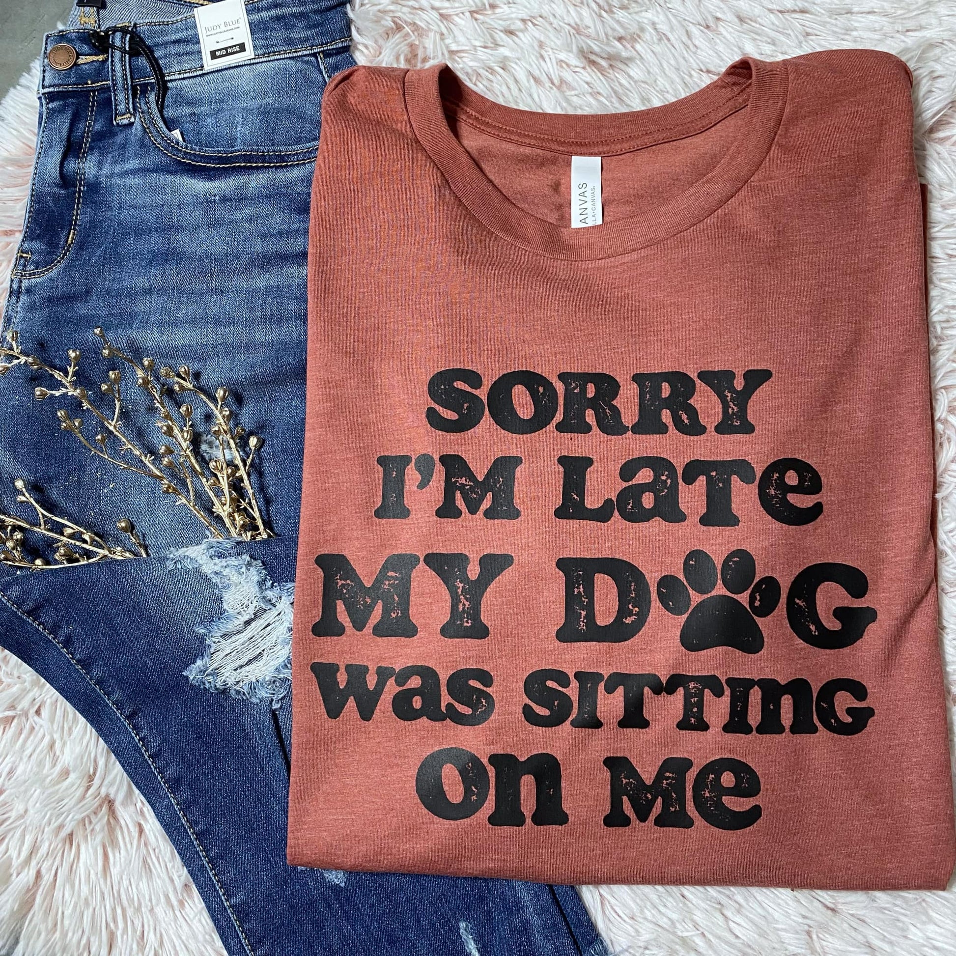 Get a good excuse for being late with our Sorry I'm Late tee! Featuring a cute dog design, this tee will make your coworkers forgive your tardiness (or at least make them laugh). Perfect for dog lovers and those who don't take themselves too seriously.