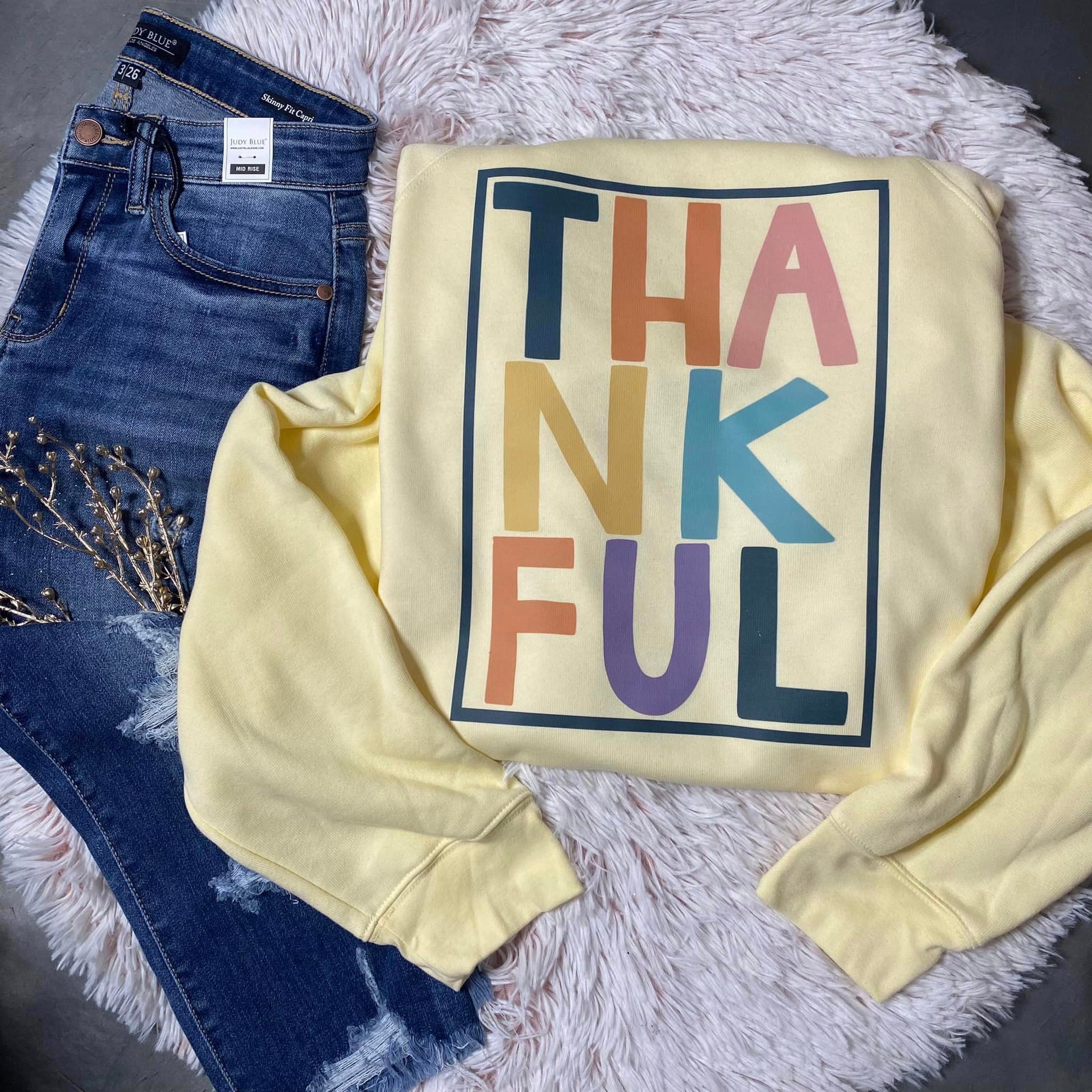 Express your gratitude in style with our Thankful tee! Made with high-quality fabric, this tee is designed to keep you comfortable and stylish. Let the world know what you're thankful for with this quirky and fun shirt. (Thank us later!)