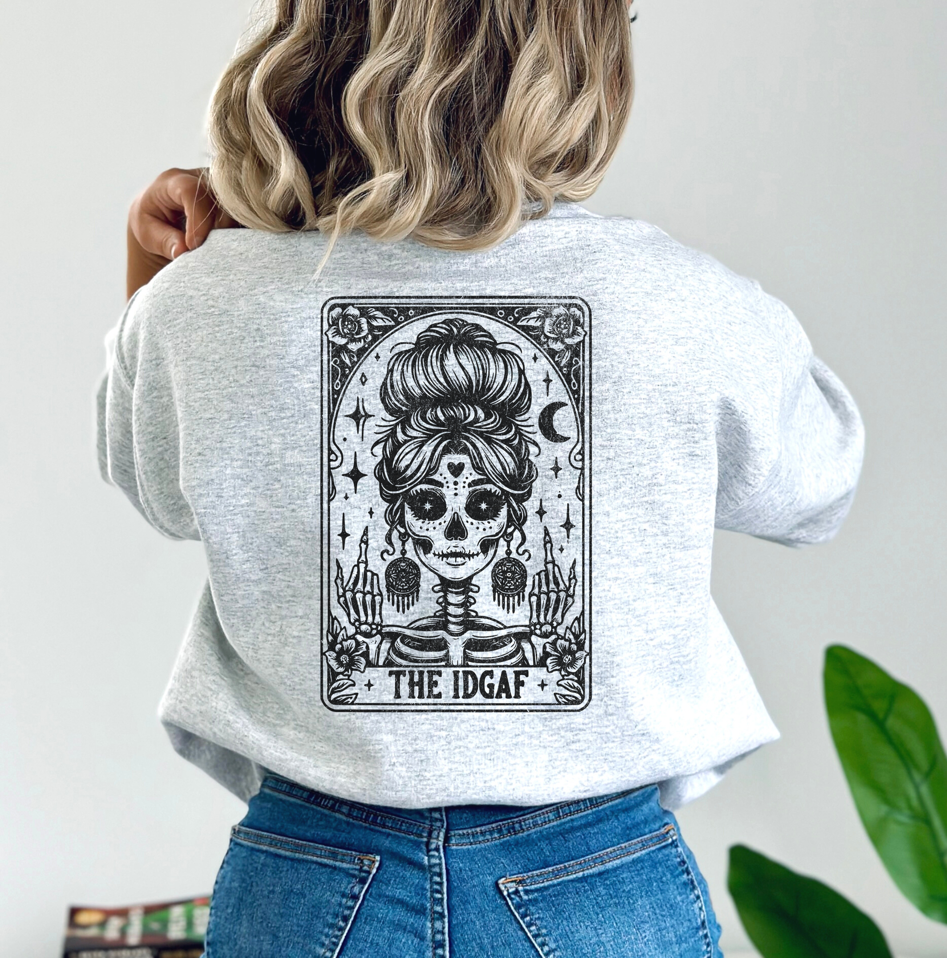 Unleash your inner sass with The IDGAF Tarot! This bold, quirky unique design that exudes confidence and a devil-may-care attitude. Perfect for those who don't take themselves too seriously, this design adds a touch of humor and attitude to your tarot design wardrobe.